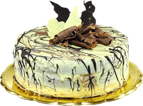 (tmavý korpus, vysokoprocentní čokoládový krém, bílá čokoláda)